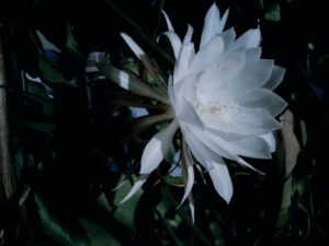 月下美人はサボテンの一種で、名前の通り夜に開花し、芳しい香りとともに一夜限りの華やかで幻想的な姿を見せてくれます。
